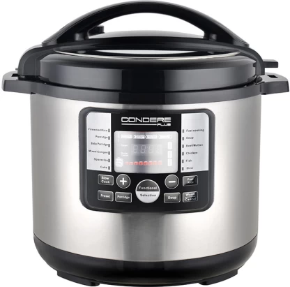 Revolutionize your cooking experience with our outstanding kitchen appliance. Adorned with a classic European appearance design, it radiates an unmistakable sense of high-end elegance and refinement. The sleek lines and tasteful aesthetics make it a centerpiece in any kitchen, elevating the overall ambiance. The 4 digital display, combined with computer button control, offers you an intuitive and user-friendly interface. You can effortlessly adjust settings and monitor the cooking progress with precision. Our new PP material plastic lid is engineered for strength and longevity. It can endure the rigors of daily cooking and maintain its integrity over time. With a remarkable 17 cooking functions, this cooker is a true multitasking wonder. Whether you’re simmering a delicate sauce, boiling pasta, or slow-cooking a hearty stew, it has the versatility to handle it all. One appliance, countless culinary possibilities. Safety is never compromised. Equipped with 8 advanced safety protection devices, you can cook with complete peace of mind. It’s designed to safeguard you and your family from any potential hazards, ensuring a reliable and worry-free cooking session every time. The detachable sealing ring is a game-changer. It not only makes cleaning a breeze but also helps in eliminating bacteria, promoting a hygienic cooking environment. You can easily remove and clean it, keeping your appliance in top-notch condition. The metal housing, with a thickness of 0.35mm, is built like a tank. It provides sturdiness and durability, capable of withstanding the test of time and the demands of a busy kitchen. And let’s not forget the high-quality non-stick coating inner pot. It’s not only highly durable but also offers long-lasting performance. Food slides off effortlessly, reducing the need for excessive scrubbing and ensuring easy maintenance. Don’t miss out on this opportunity to own a kitchen appliance that combines style, functionality, safety, and durability. Upgrade your cooking game and bring home this remarkable cooker today. Features: Classic european appearance design,high-enddecent 4 digital display,with computer button control New PP material plastic lid,strong and durable Setting 17 cooking functions,one cooker with multi-purpose 8 safety protection device, safe and reliable Detachable sealing ring, easy to clean and eliminate bacteria Metal housing with thickness of 0.35mm, sturdy and durable High quality non – stick coating inner pot, durablelong-lived 220-240V~ 50/60Hz 4L,800W What’s in the box 1xOne cooker have a inner pot 1xA rice scoop 1xA measure cup 1xA manual 1xA power cord.