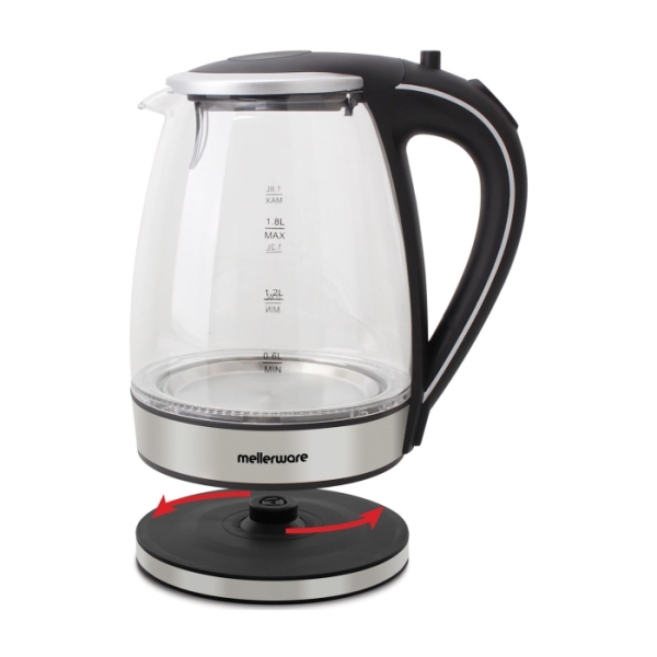 Mellerware Kettle 360 Degree Cordless Glass Silver 1.8L 2200W “Azure”