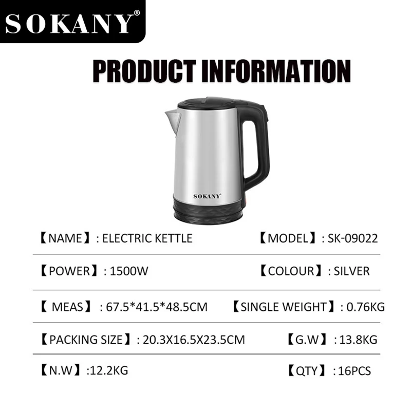 SOKANY Kettle SK-09022 2.3L Metallic 1500W Beverage Maker