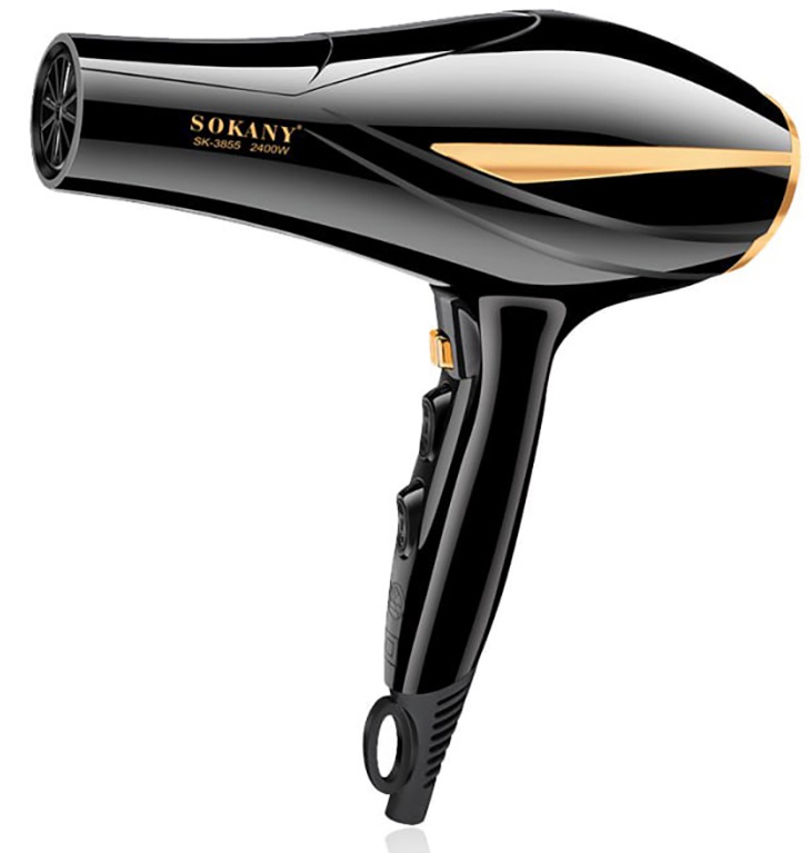 Sokany SK-3855 2400W Hair Dryer will help to keep your hair soft and dry, provides superior hair styling performance. It comes with a 2400 watt motor that provides powerful airflow to dry hair quickly and professionally. Long power cord conveniently reaches remote electrical outlets. This hair dryer allows convenient storage when not in use. Ergonomic design, made from high quality material to ensure long-term performance. It can be used for both professional and personal hair styling needs. It comes in black/gold color.