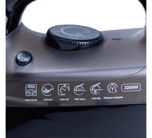 Functionality and comfort. Its 3200 W power guarantees heating and smooth ironing of any folds, saving you time and effort. The titanium sole works smoothly, lightly and effectively, and the numerical functions help keep an eye on any speeches.